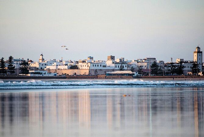 Vor der Bucht von Essaouira liegt die Insel Mogador, das ist der Grund weshalb die Wellen in der Bucht von Essouira kleiner und ungefährlicher sind als an anderen Spots. Die Bucht von Essouira ist besonders gut geeignet für Surf Ein- und Aufsteiger.