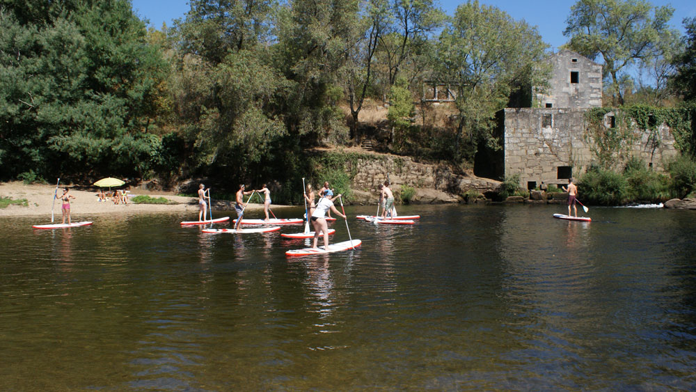 Stehend auf einem Surfboard und dann auch noch Paddeln? Kein Problem! Bei der Einweisung lernt Ihr die richtige Handhabung von Board und Paddel. Nach der Einweisung seid Ihr dann auch fit für unsere Abenteuertouren auf den Seitenarmen des Rio Minho.