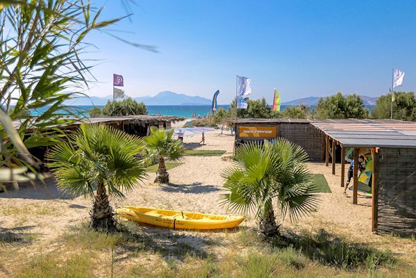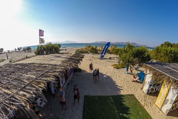 Die Station befindet sich an der Nordküste der Insel. Durch eine davor gelegene Sandbank gibt es einen Stehbereich von ca, 40-50m. Westwind mit Flachwasser sorgt für beste Bedingungen für Anfänger, Fortgeschrittene kommen beim Tricksen auf ihre Kosten. Bei stärkerem Nordwind (Meltemi) entstehen Wellen bis 1.5m. Eine Herausforderung für jeden Surfer.