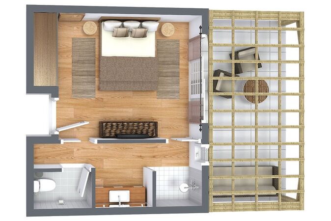 Die Einrichtung der individuell gestalteten Zimmer des Boutique-Hotels ist von der regionalen Architektur inspiriert. Warme, erdige Farbtöne verbinden sich mit weichen und groben Strukturen zu einer perfekten Zuflucht aus Eurem Alltag. Auf der Terrasse mit Pergola genießet Ihr Stunden voller Entspannung.