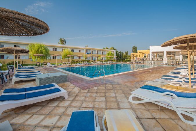 Das Hotel liegt ca. 500 m vom langen, feinsandigen Strand entfernt. Nach Marmari mit seinen Tavernen und Bars sind es ca. 400 m. Zum Flughafen sowie nach Kos-Stadt sind es ca. 15 km.