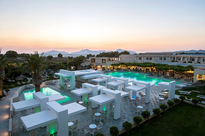 Die 4 Sterne Anlage liegt nur 50 m vom feinsandigen, flach abfallenden Strand entfernt. In der Nähe des Hotels befinden sich mehrere Tavernen und Supermärkte und direkt vor dem Hotel befindet sich eine Bushaltestelle. Nach Kos-Stadt sind es ca. 16 km. Transferzeit zum Flughafen: ca. 20 bis 35 Minuten.
