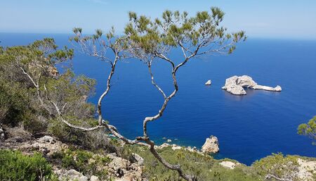 Die Cala Bassa und Cala Conta, mit ihrem weichen Sand und türkisfarbenem Wasser sind sicherlich mit die schönsten Badebuchten Ibizas. Der luftige Küstenpfad bietet uns immer wieder atemberaubende Ausblicke. Auf unserer Wanderung kommen wir an einem der Wachtürme Ibizas, dem Torre d'en Roviera, und der verlassenen „Rave Cave“ vorbei. Weiter geht es über die ruhige Cala Codolar zur Cala Llentia mit dem „Stonehenge“ (Can Soleil) von Ibiza mit ihren einzigartigen Steinsäulen.
